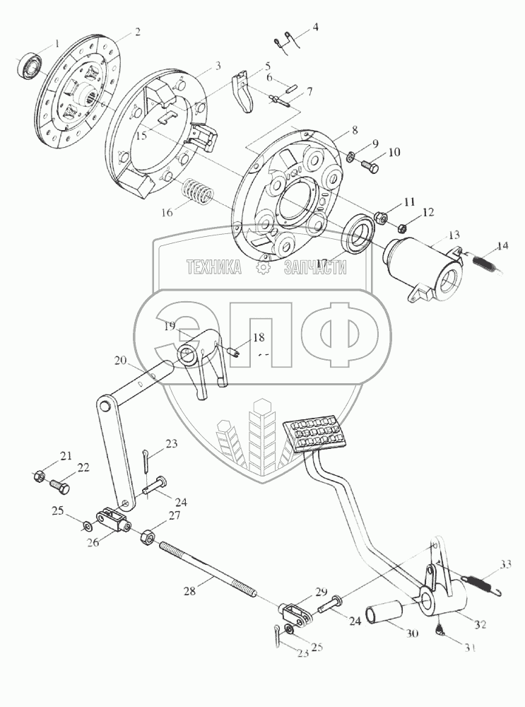 Каталог запасных частей к технике: Foton Europard 25. Clutch Assembly-1