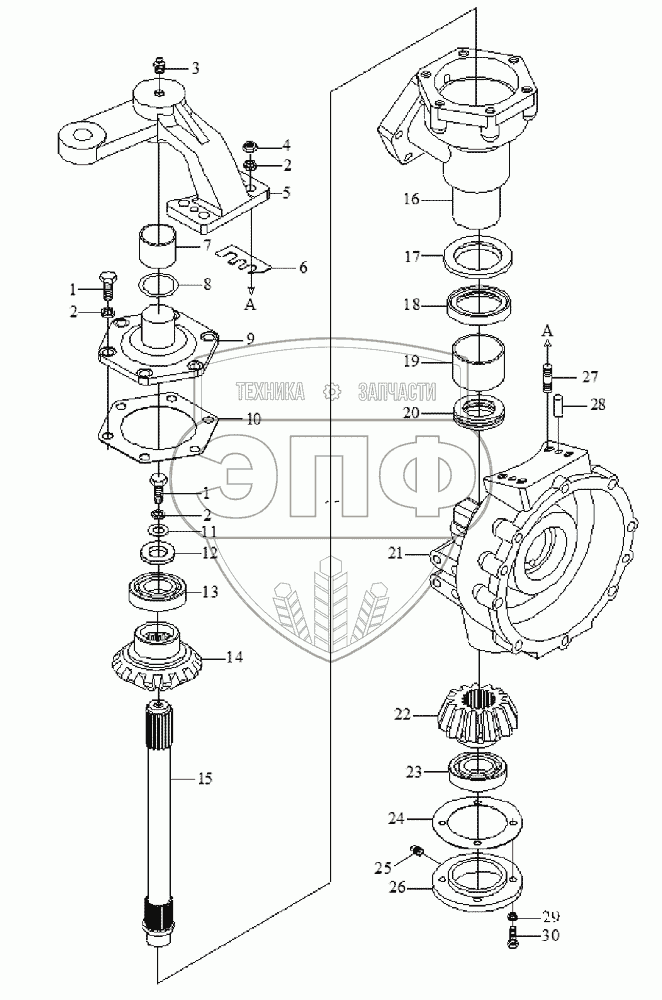 Каталог запасных частей к технике: Foton Europard 25. Front driving axle assembly-4
