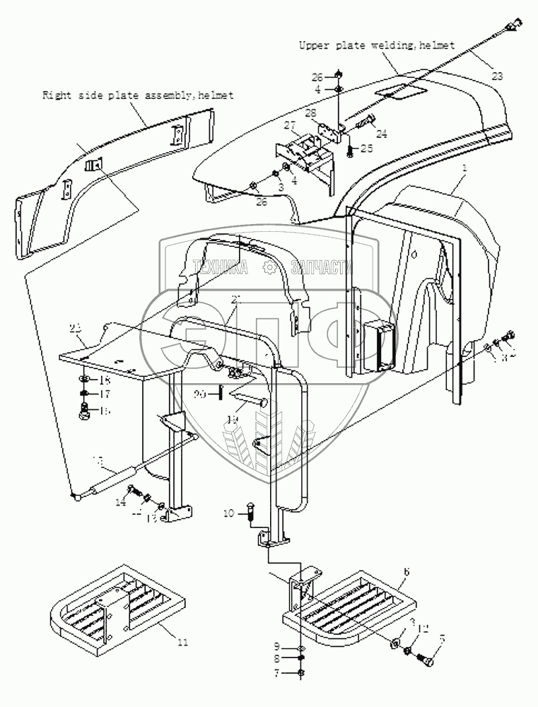 Каталог запасных частей к технике: Foton Europard 40. Helmet Structure Assembly