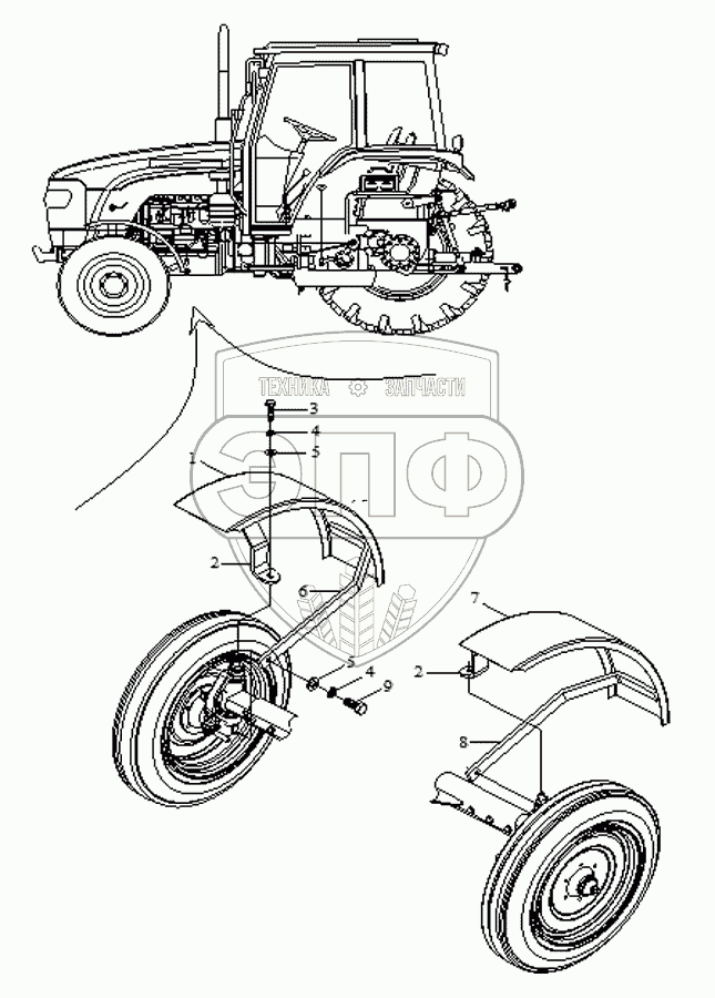 Каталог запасных частей к технике: Foton TA60. Front mud guard assembly