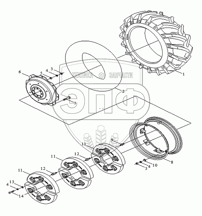 Каталог запасных частей к технике: Foton TA60. Rear Driving Wheel Assembly