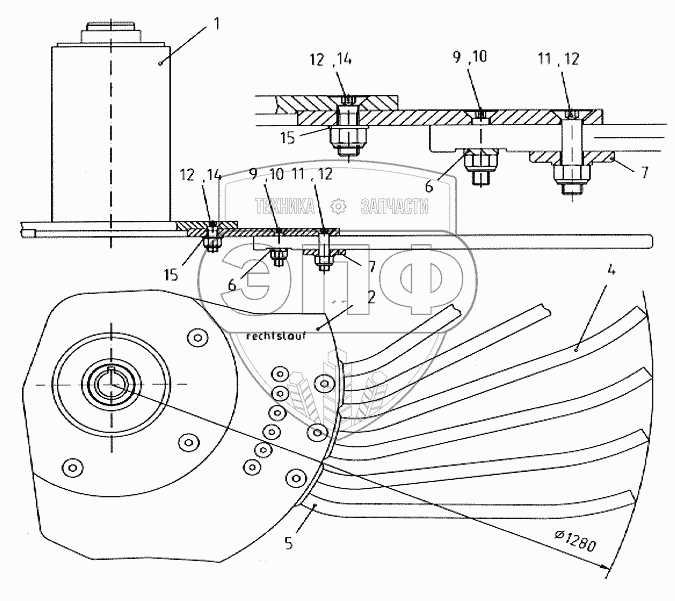 Каталог запасных частей к технике: Franz Kleine SF-10-2. Сепарирующее колесо правого вращения