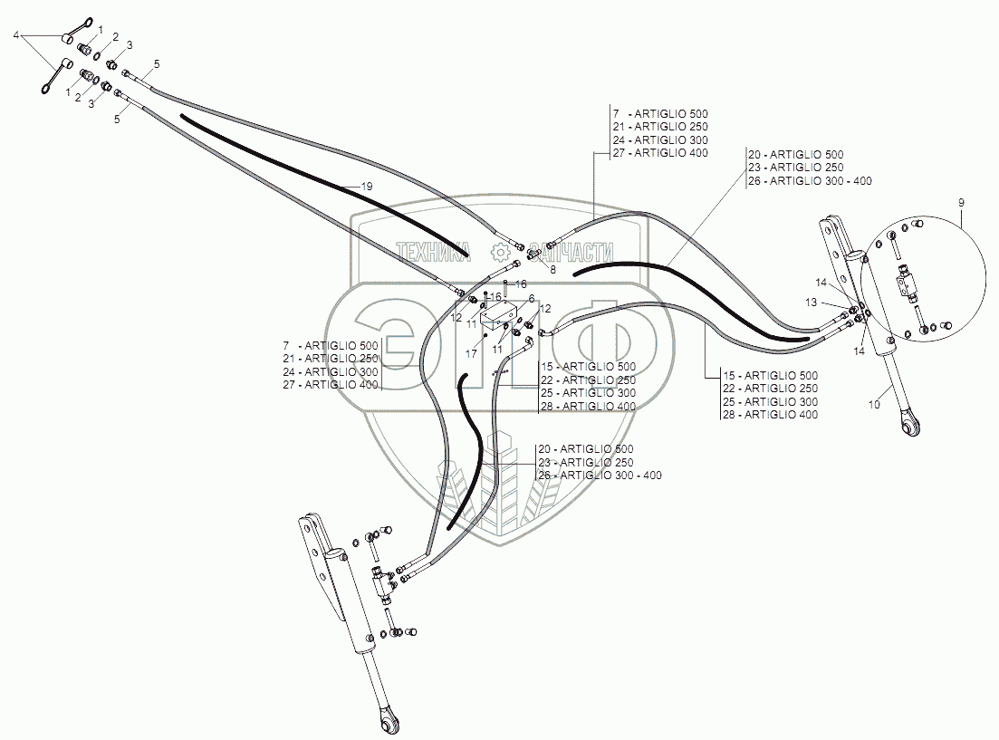 Каталог запасных частей к технике: Gaspardo ARTIGLIO. HYDRAULIC SYSTEM MOD. 2007-2008