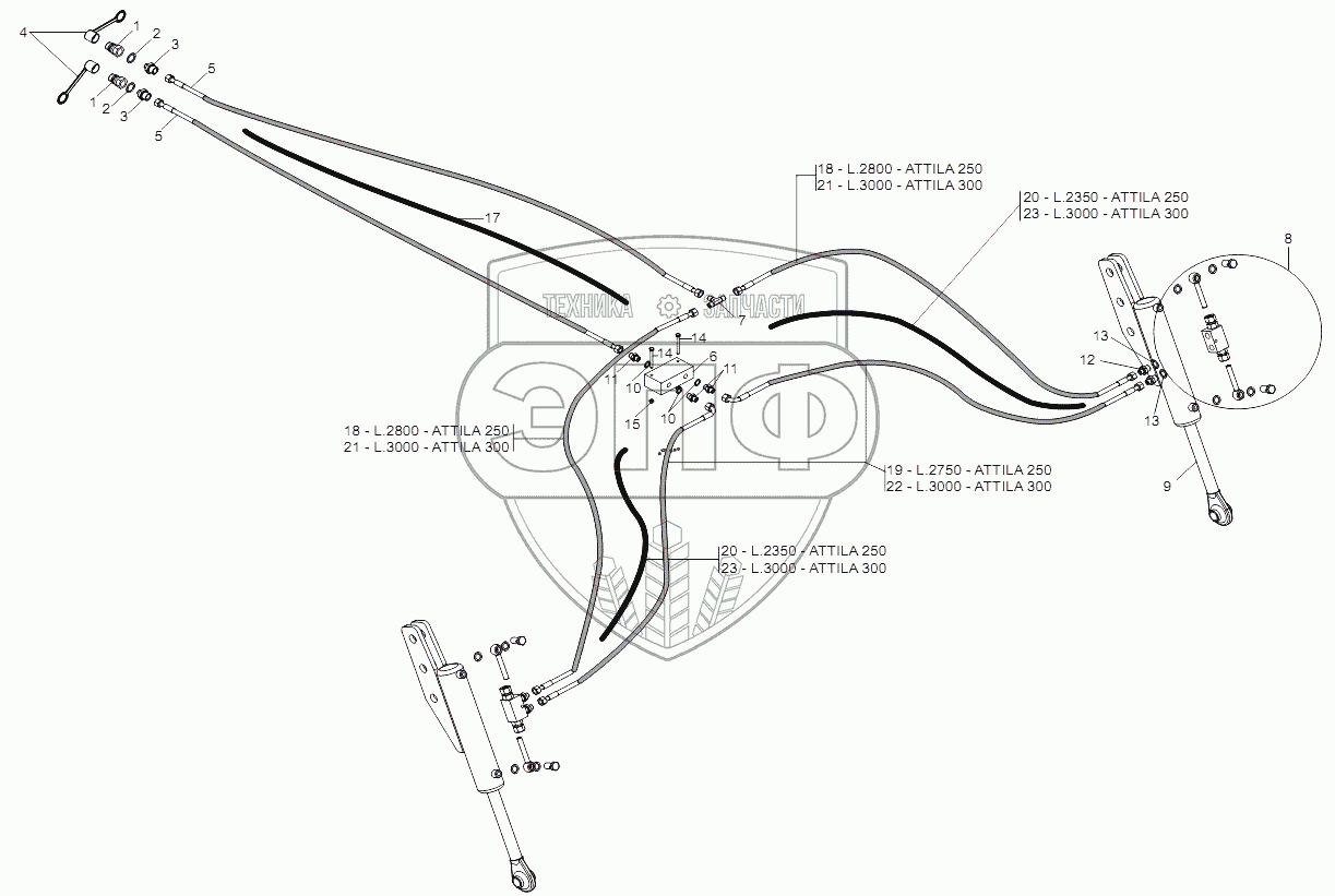 Каталог запасных частей к технике: Gaspardo ATTILA. HYDRAULIC SYSTEM REAR ROLLERS
