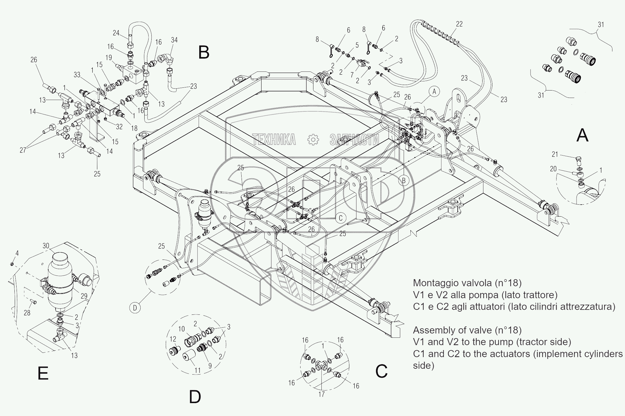 Каталог запасных частей к технике: Gaspardo DIABLO. HYDRAULIC PLANT FRAME ELEMENT OPERATOR