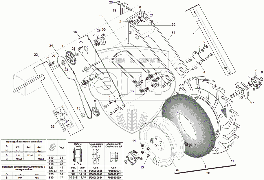 Каталог запасных частей к технике: Gaspardo METRO MT-SP. FRONT WHEEL TRANSMISSION