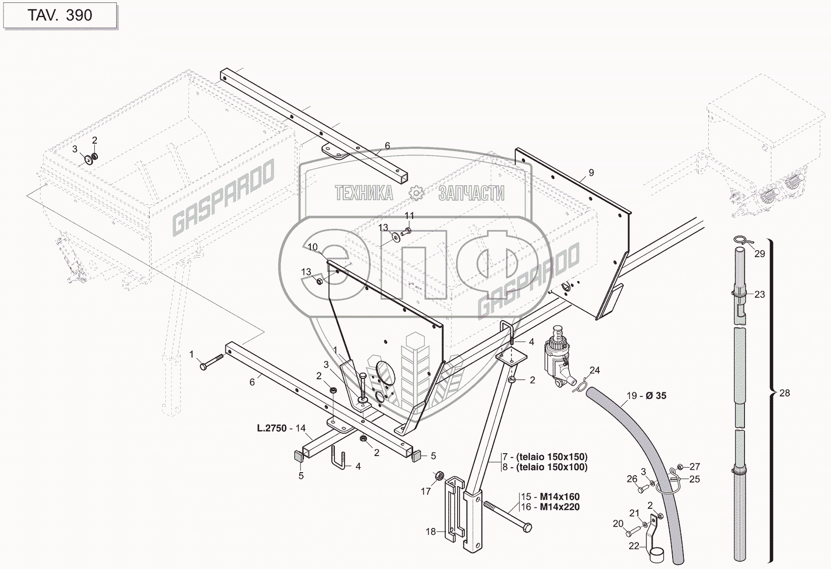 Каталог запасных частей к технике: Gaspardo MT. DOUBLE FERTILIZER APPLICATION («DEXON»)