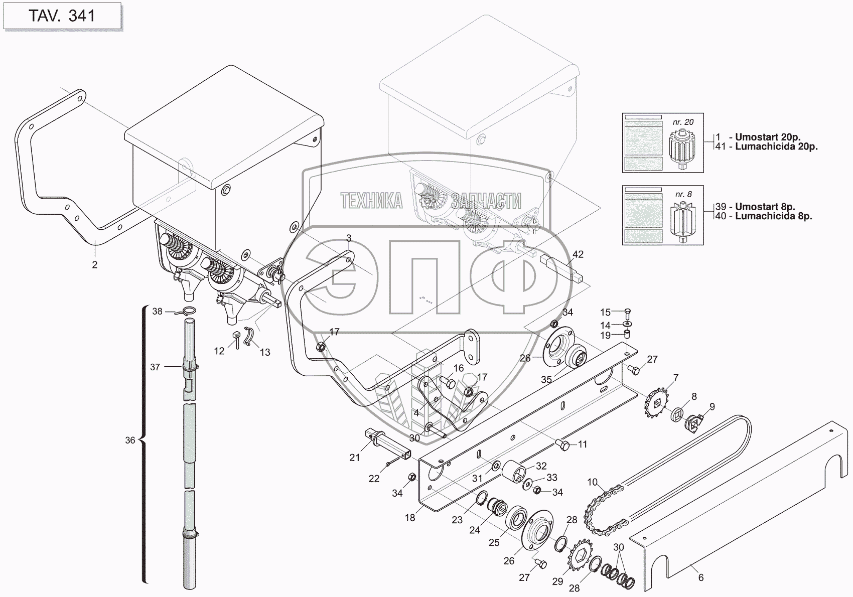 Каталог запасных частей к технике: Gaspardo MT. DOUBLE MICROGRANULATOR APPLICATION
