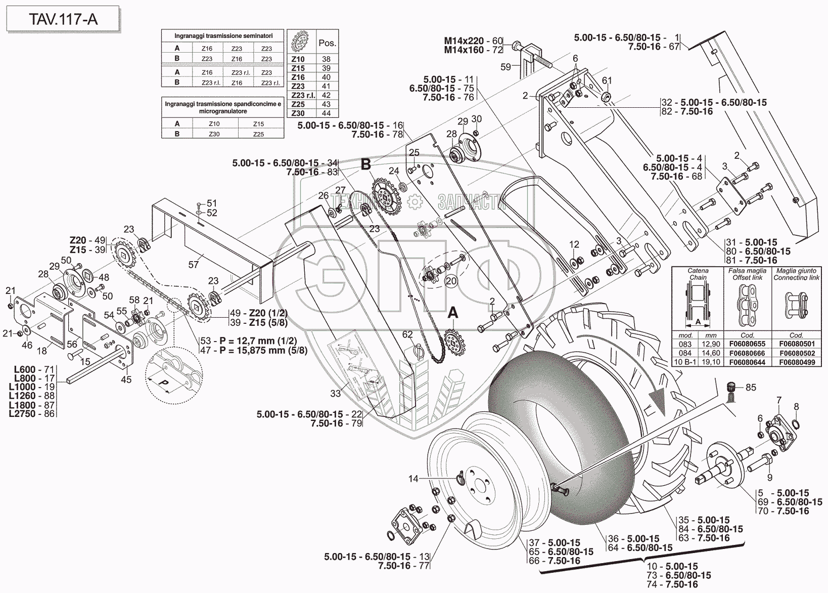 Каталог запасных частей к технике: Gaspardo MT. FRONT TRANSMISSION WHEELS