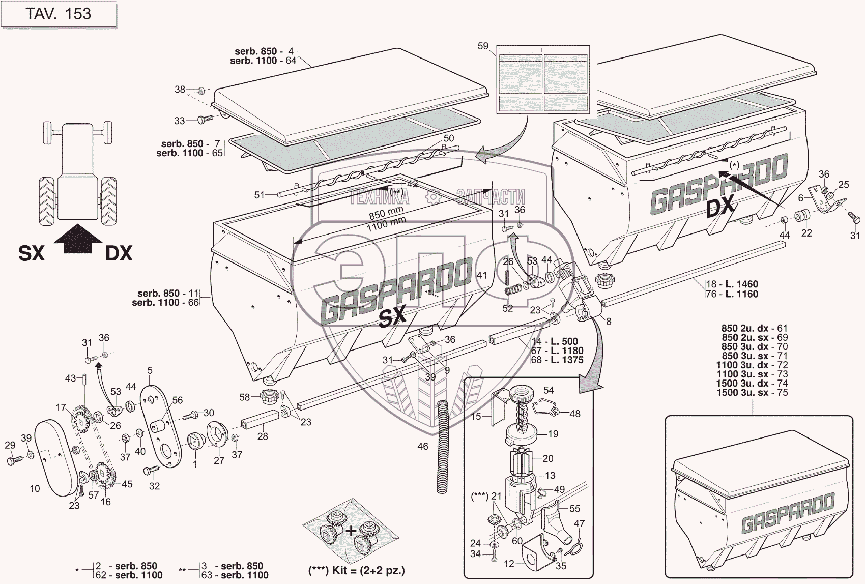 Каталог запасных частей к технике: Gaspardo MT. PLASTIC FERTILIZER SPREADER TANKS