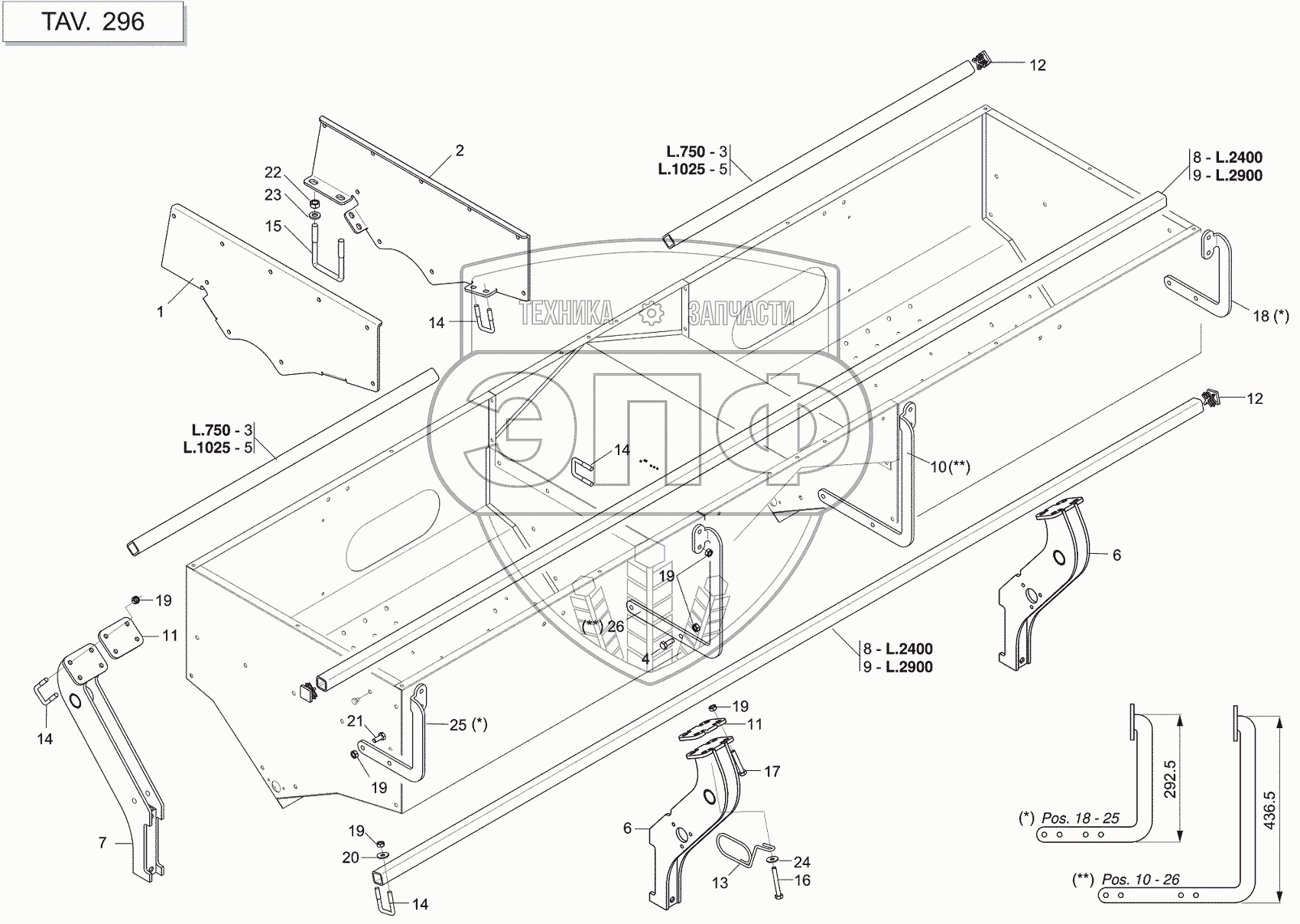 Каталог запасных частей к технике: Gaspardo MT. SINGLE FERTILIZER TANK SUPPORTS