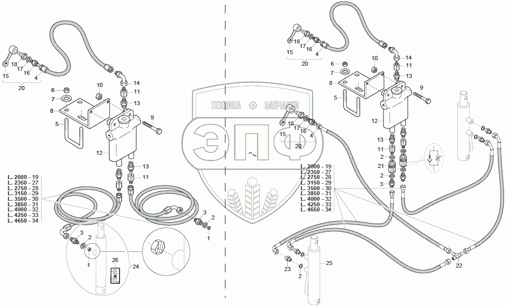 Каталог запасных частей к технике: Gaspardo MT. HYDRAULIC ROW MARKING SYSTEM