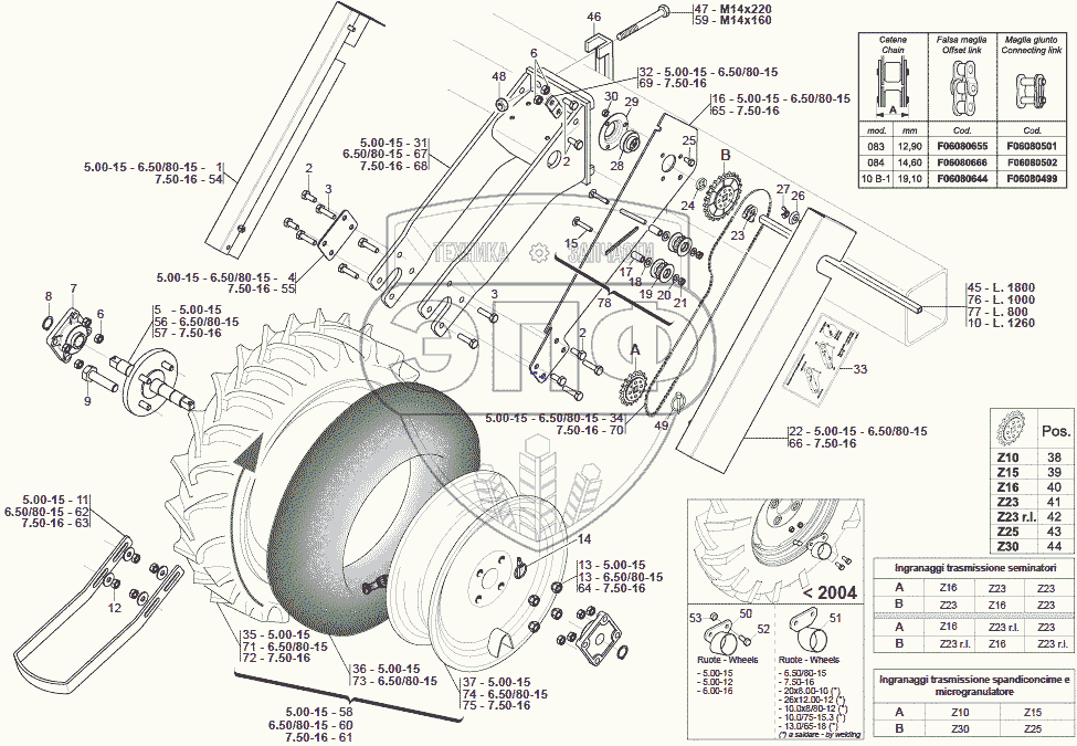 Каталог запасных частей к технике: Gaspardo MT. TRANSMISSION WHEELS