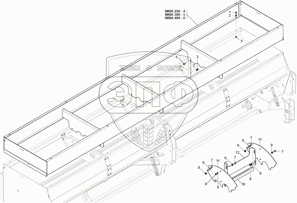 Каталог запасных частей к технике: Gaspardo Nina. SEPARATORS AND RAISING HOPPER