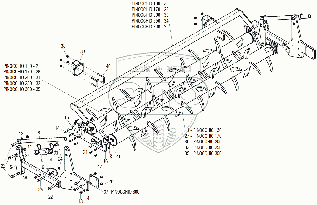 Каталог запасных частей к технике: Gaspardo PINOCCHIO. MECHANICAL DOUBLE REAR ROLLER