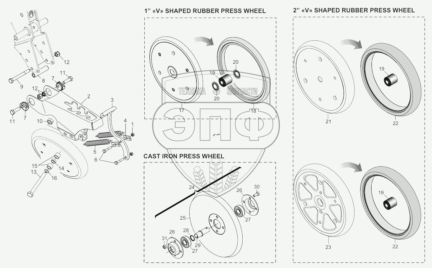 Каталог запасных частей к технике: Gaspardo Сеялка Gaspardo MTR. COMPRESSION WHEELS