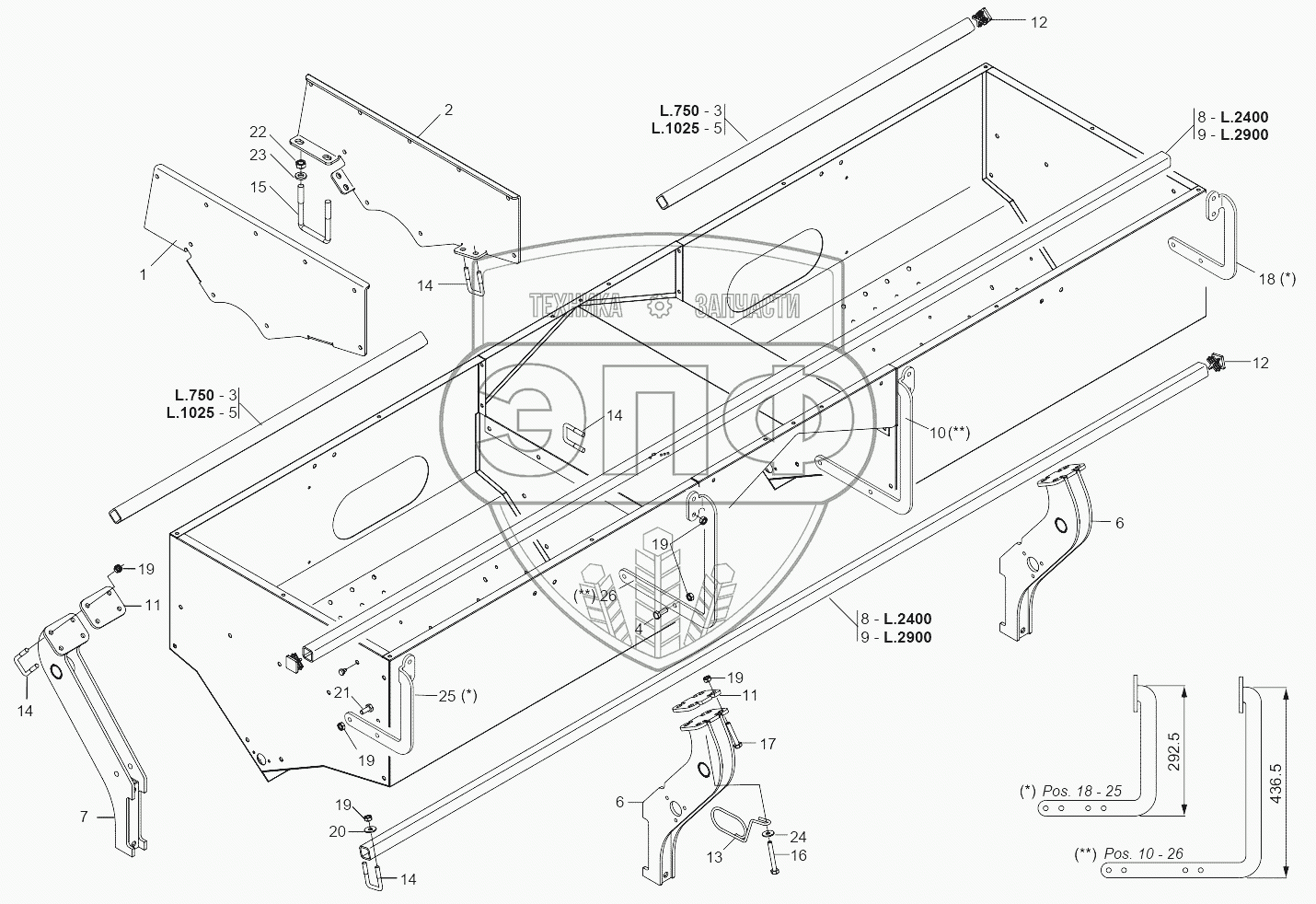 Каталог запасных частей к технике: Gaspardo Сеялка Gaspardo MTR. SINGLE SPRAYING TANK SUPPORTS