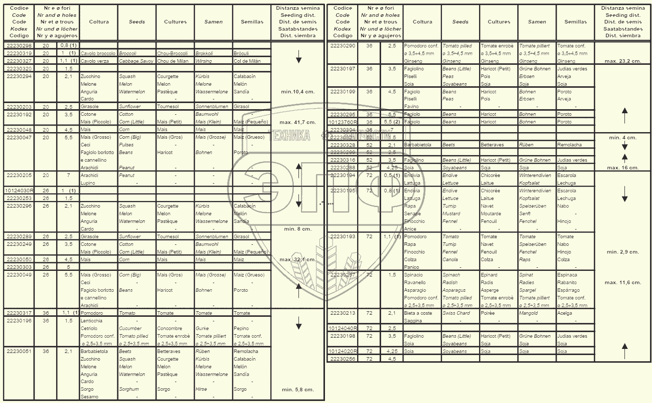 Каталог запасных частей к технике: Gaspardo Сеялка MAXIMETRO. TABLE SEED PLATE