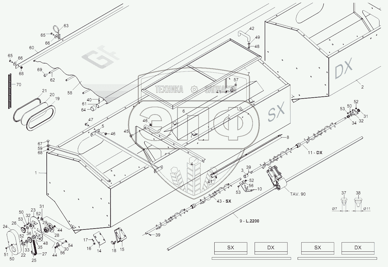 Каталог запасных частей к технике: Gaspardo Сеялка METRO MT/SP. FERTILIZER TANKS