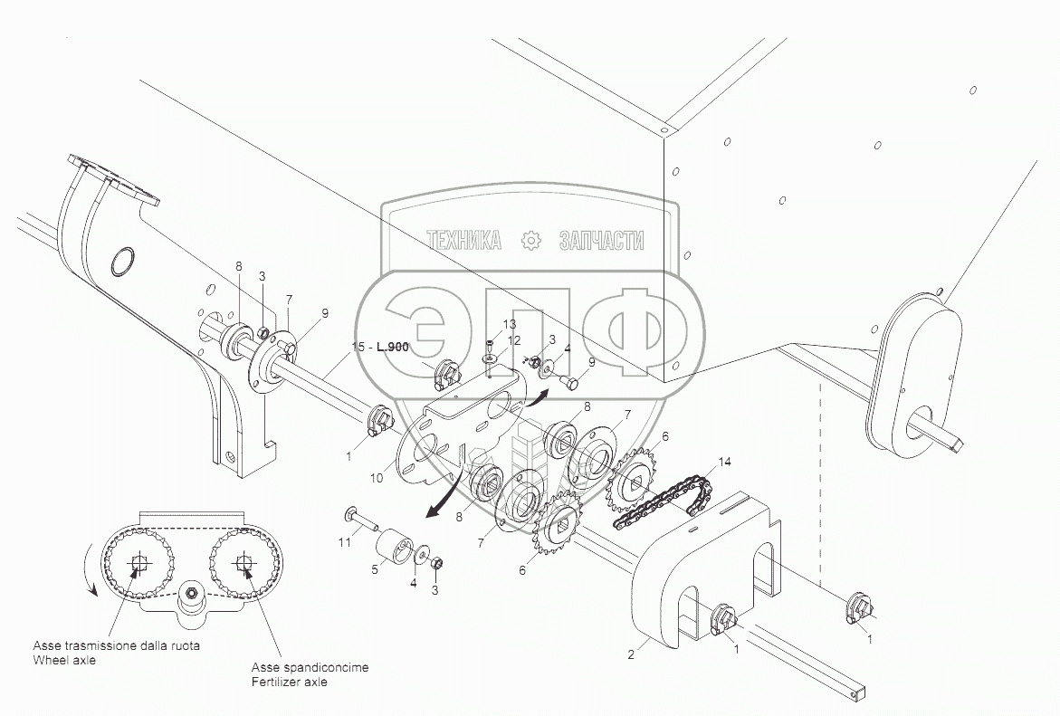 Каталог запасных частей к технике: Gaspardo Сеялка METRO MT/SP. FERTILIZER TRANSMISSION