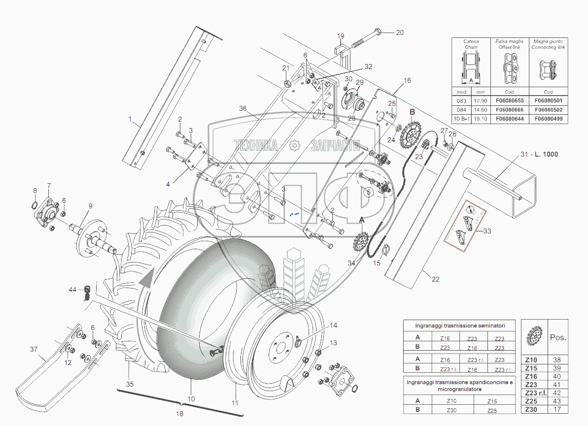 Каталог запасных частей к технике: Gaspardo Сеялка METRO MT/SP. WHEEL TRANSMISSION