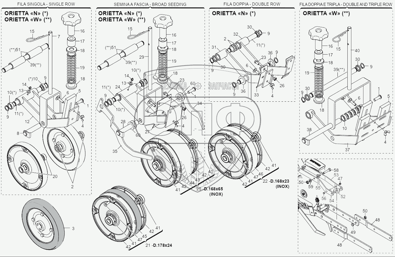 Каталог запасных частей к технике: Gaspardo Сеялка OLIMPIA, ORIETTA-C. COMPRESSION WHEELS
