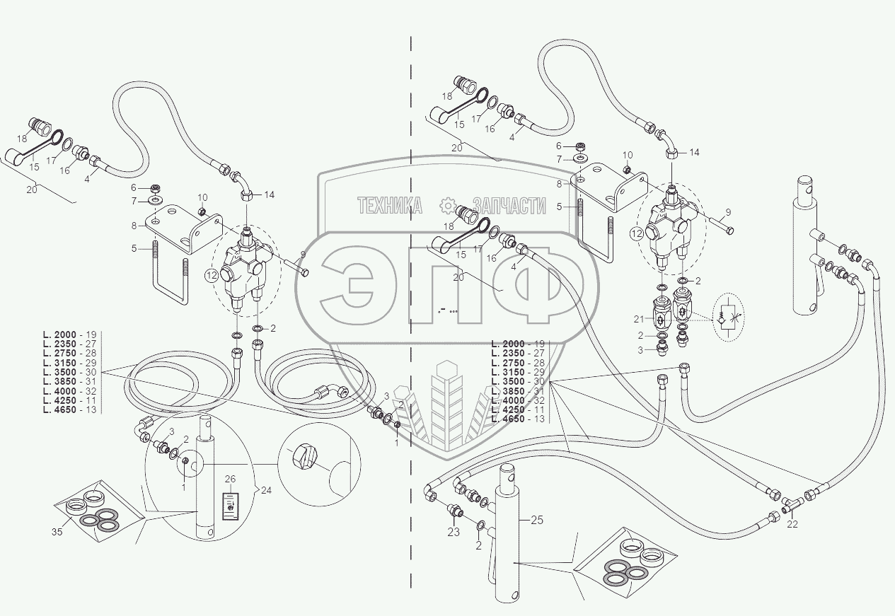 Каталог запасных частей к технике: Gaspardo Сеялка OLIMPIA, ORIETTA-C. HYDRAULIC DRAWER COMMAND