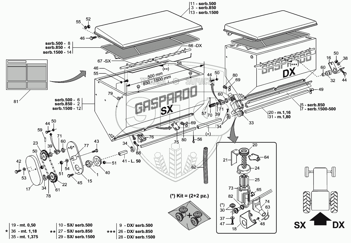 Каталог запасных частей к технике: Gaspardo Сеялка серии МТ. SERBATOI SPANDICONCIME FERRO