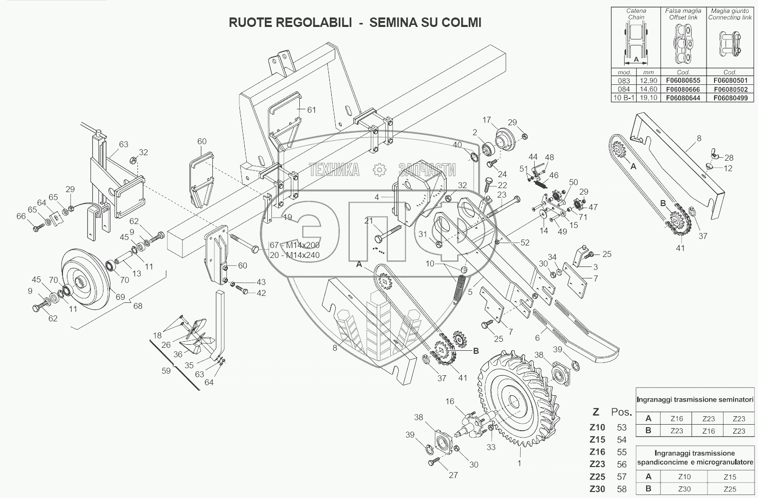 Каталог запасных частей к технике: Gaspardo SP. ADJUSTABLE WHEELS