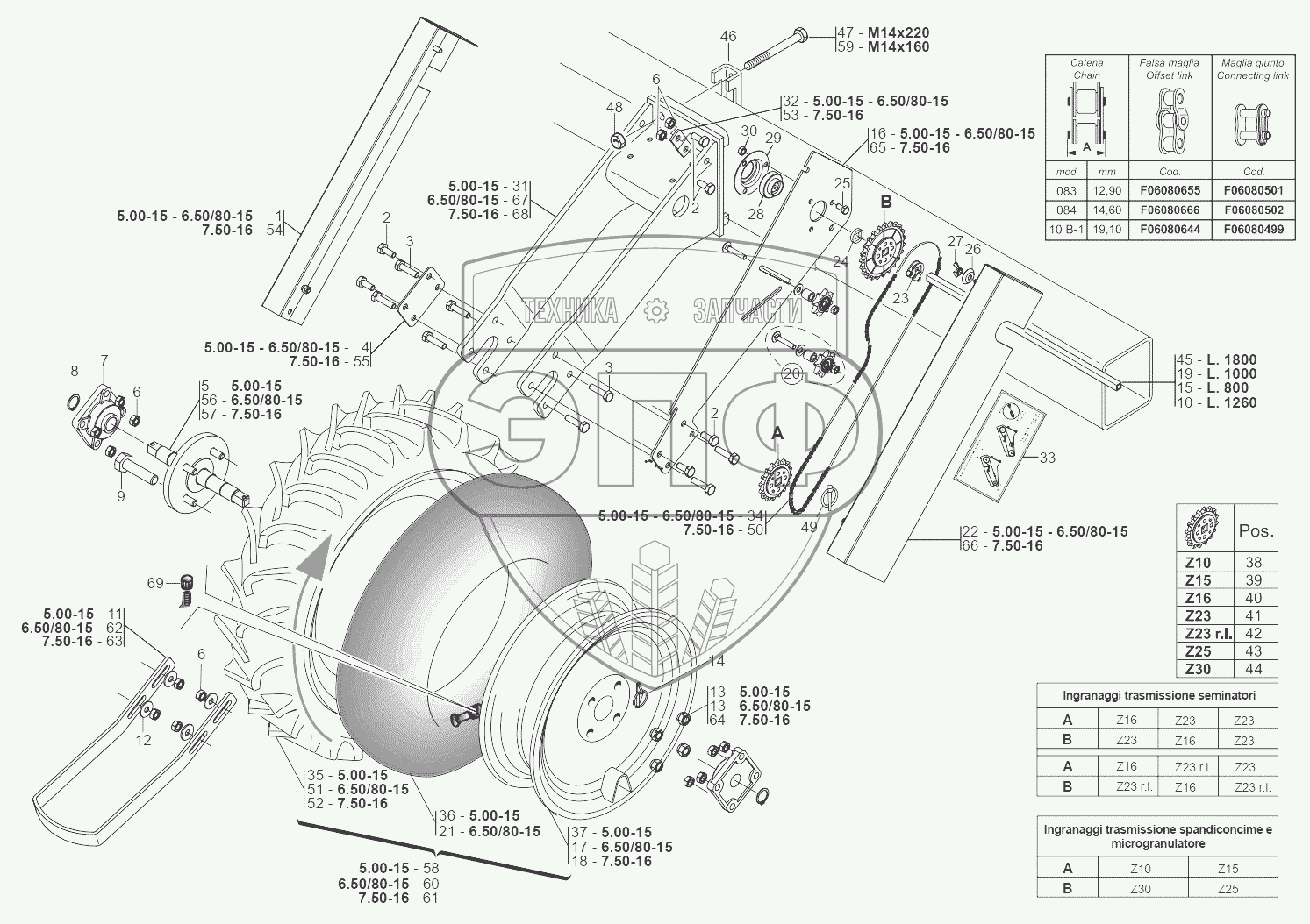 Каталог запасных частей к технике: Gaspardo SP. TRANSMISSION WHEELS