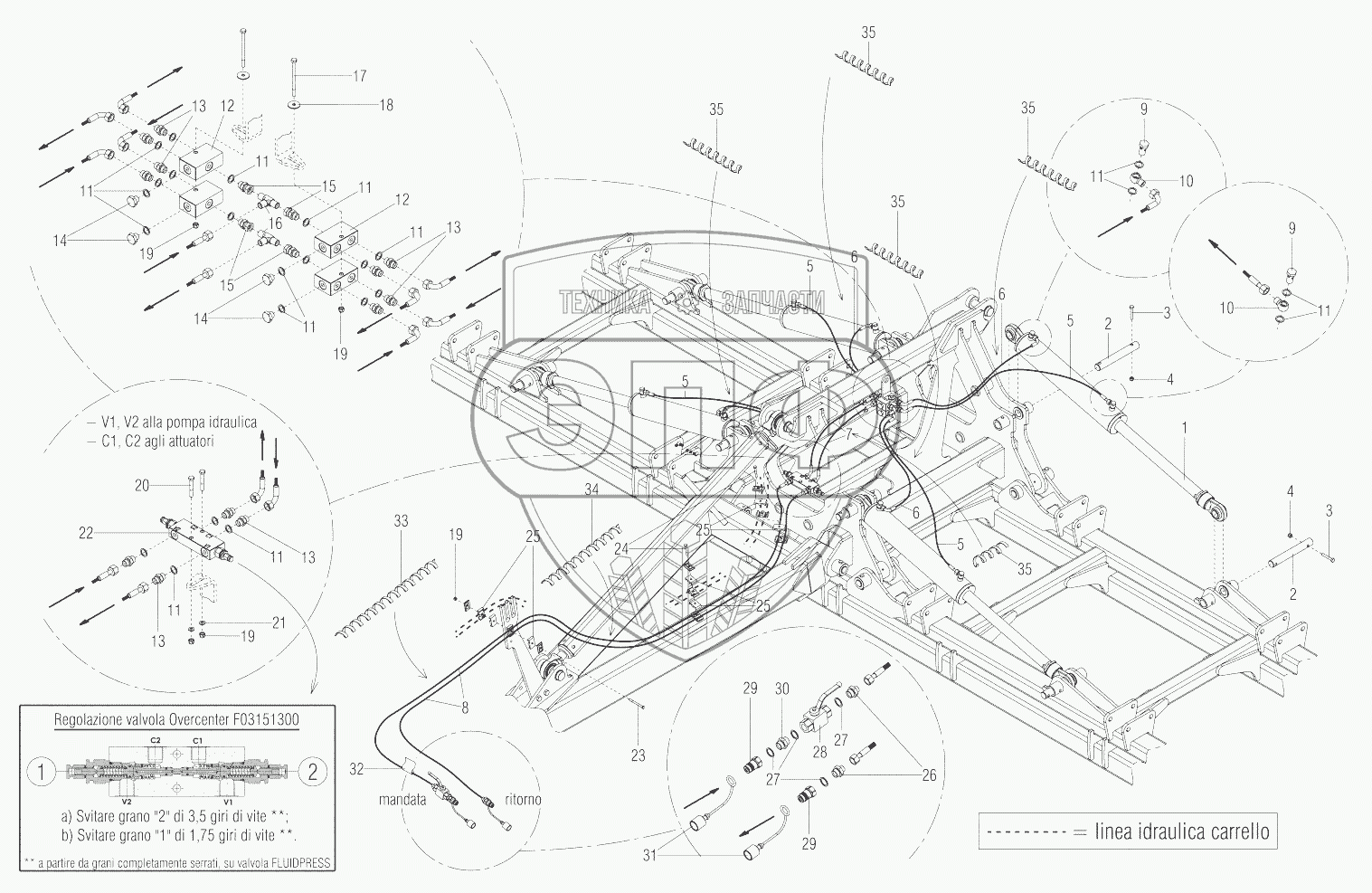 Каталог запасных частей к технике: Gaspardo UFO TZAR. Side frames hydraulic plant