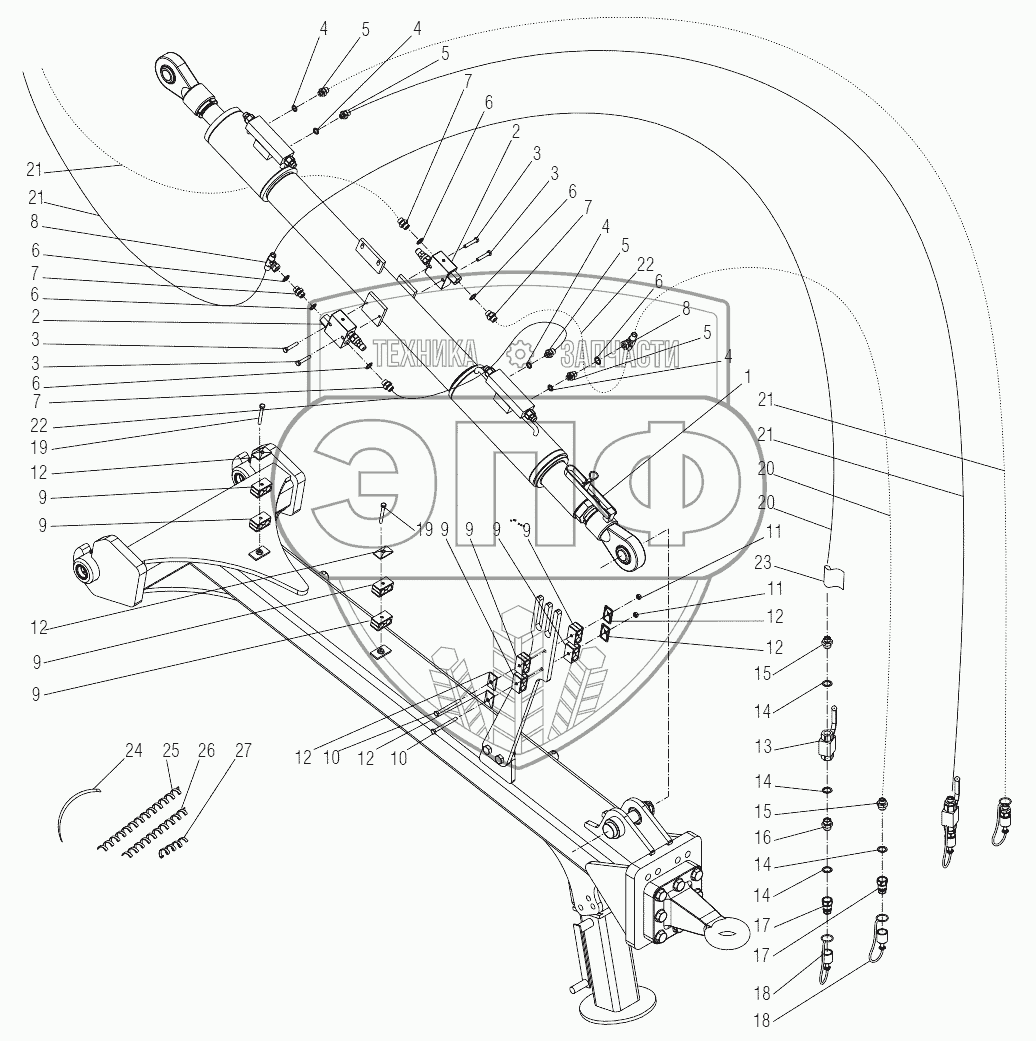 Каталог запасных частей к технике: Gaspardo UFO TZAR C. Hydraulic drawbar 600