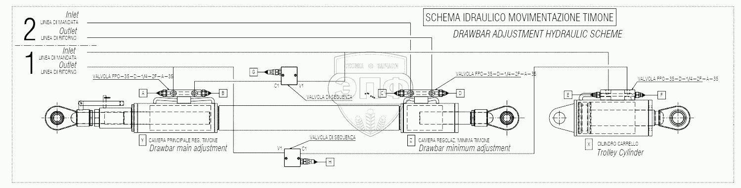 Каталог запасных частей к технике: Gaspardo UFO TZAR C. Hydraulic drawbar scheme