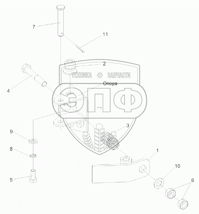 Каталог запасных частей к технике: Гомсельмаш FS80-2. Установка опоры КВС-2-0116550