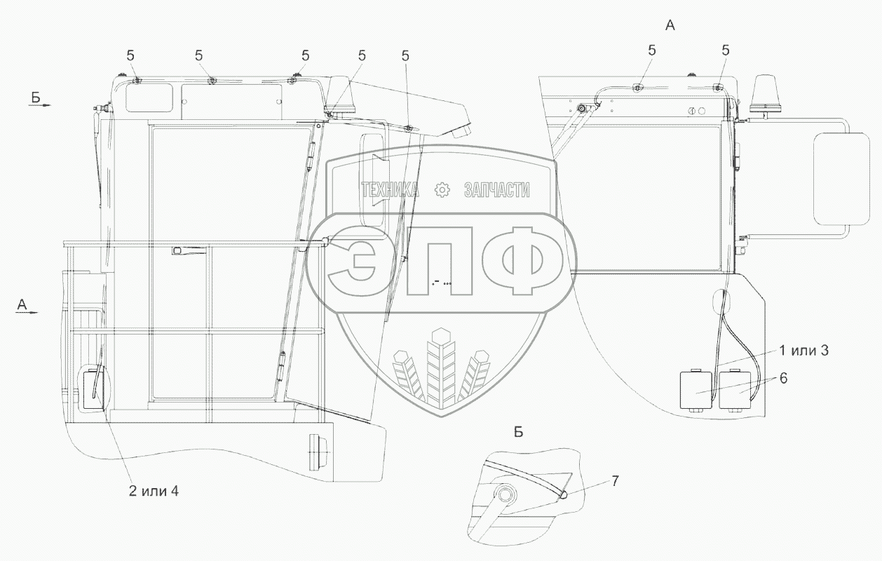 Каталог запасных частей к технике: Гомсельмаш FS80-2. Установка стеклоомывателей КВС-2-0122030