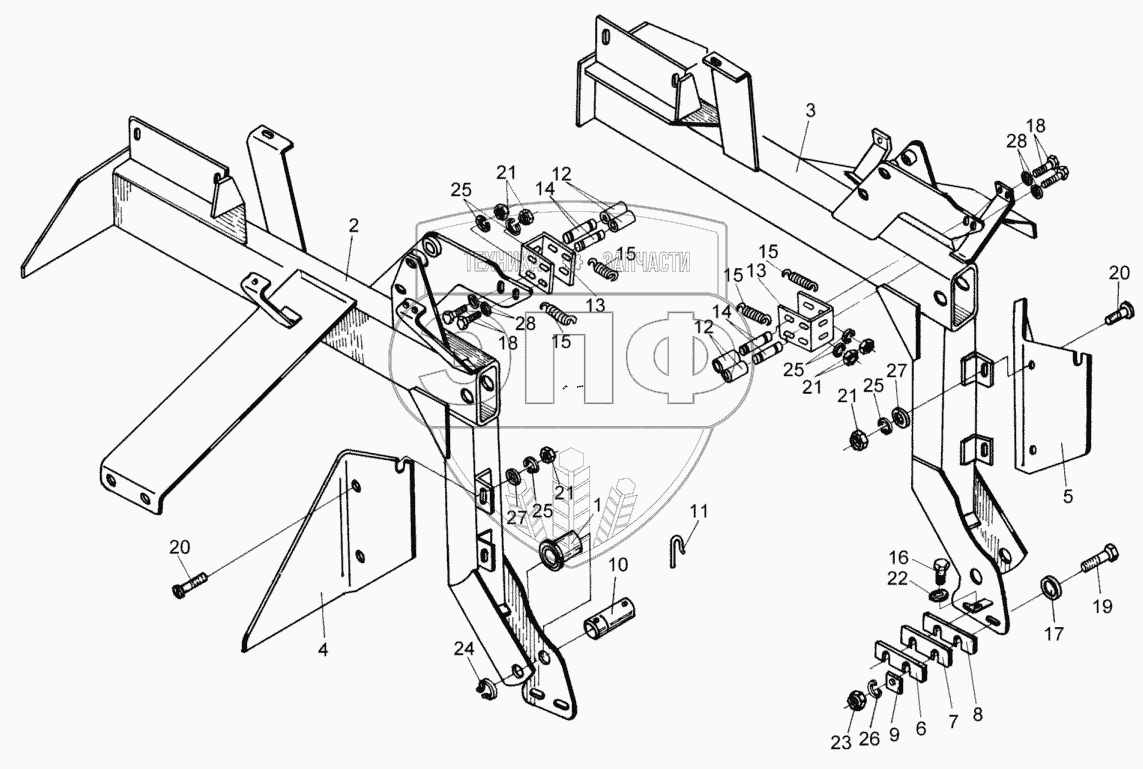 Каталог запасных частей к технике: Гомсельмаш КДП-3000 Палессе FT40. Рама навески ПКК 0205070