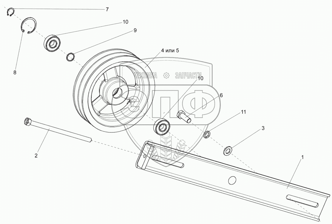 Каталог запасных частей к технике: Гомсельмаш КДП-3000 Палессе FT40. Устройство натяжное КИС 0215000Б
