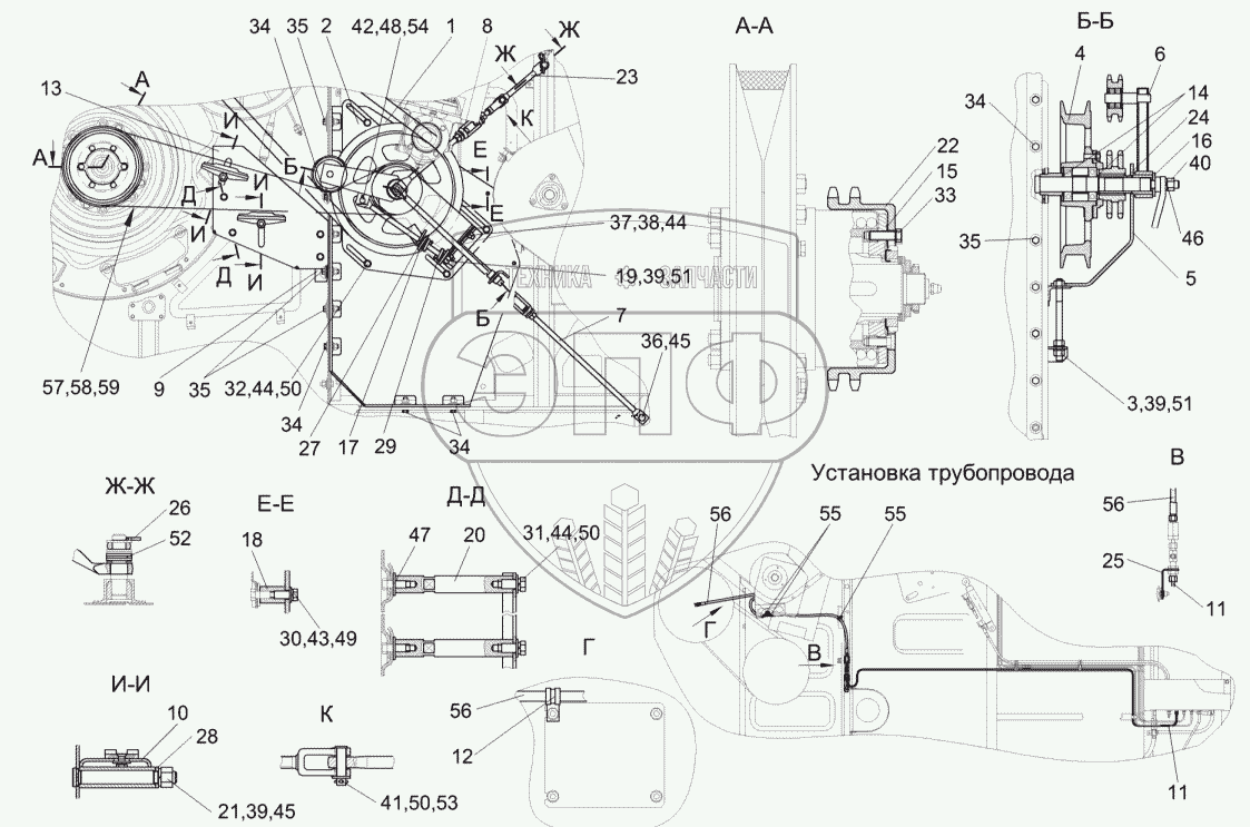 Каталог запасных частей к технике: Гомсельмаш КОК-6. Привод молотильного барабана КЗК-10-0505000