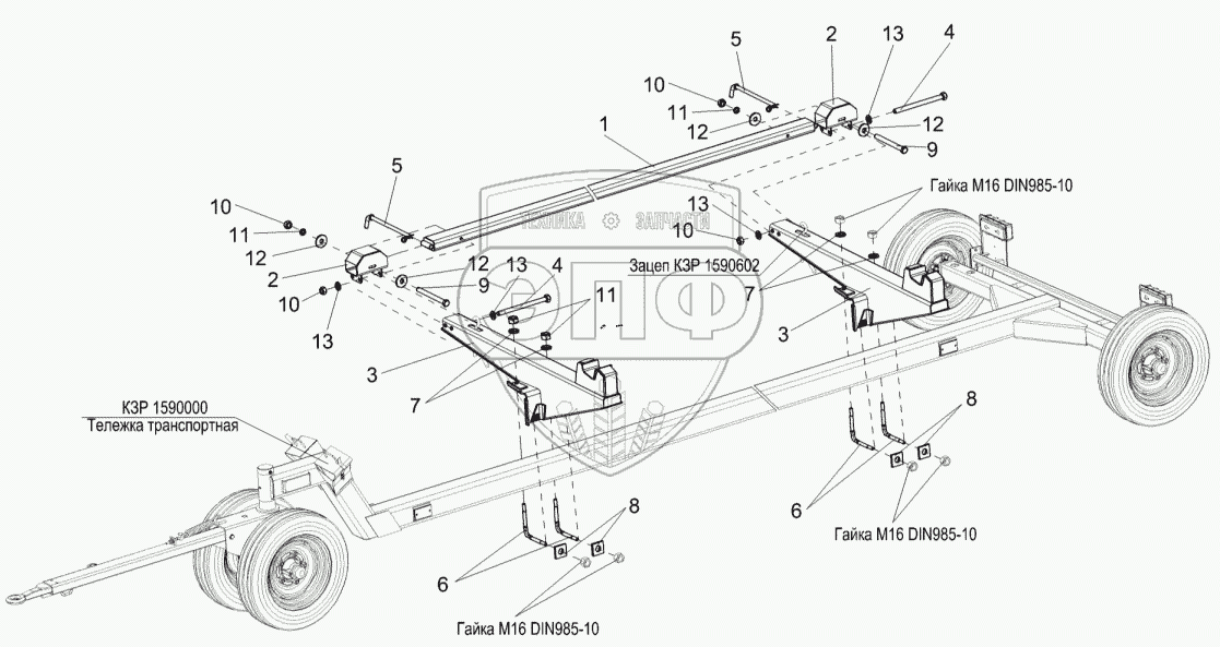 Каталог запасных частей к технике: Гомсельмаш КОК-6. Тележка транспортная КЗК-10-0590000