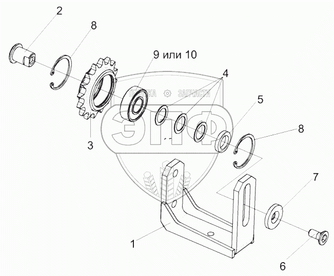 Каталог запасных частей к технике: Гомсельмаш КОК-8-2. Устройство натяжное 1.320.243