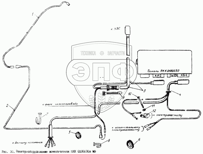 Каталог запасных частей к технике: Гомсельмаш КПК Полесье-3000. Электрооборудование измельчителя ПКК 0100000МЭ