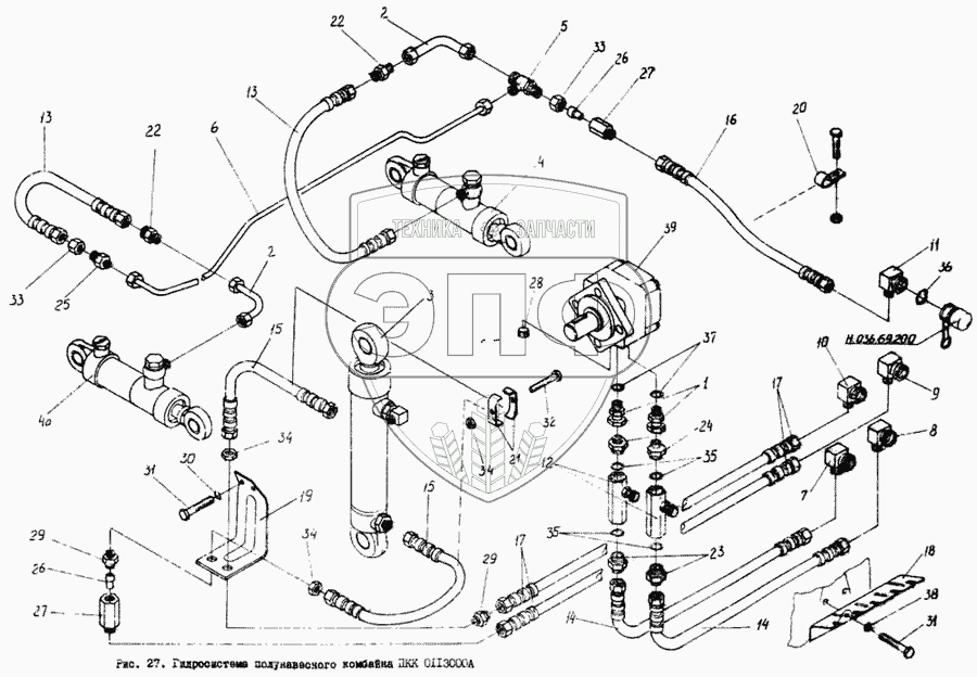 Каталог запасных частей к технике: Гомсельмаш КПК Полесье-3000. Гидросистема полунавесного комбайна ПКК 0113000