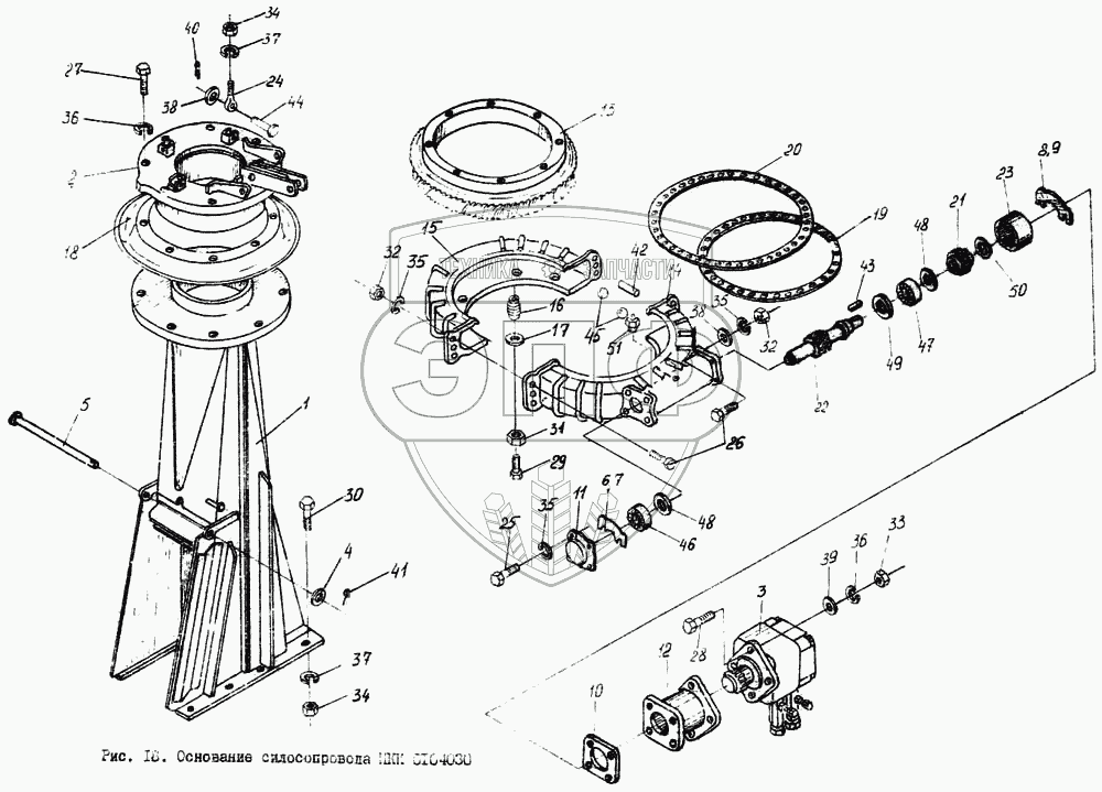 Каталог запасных частей к технике: Гомсельмаш КПК Полесье-3000. Основание силосопровода ПКК 0104030