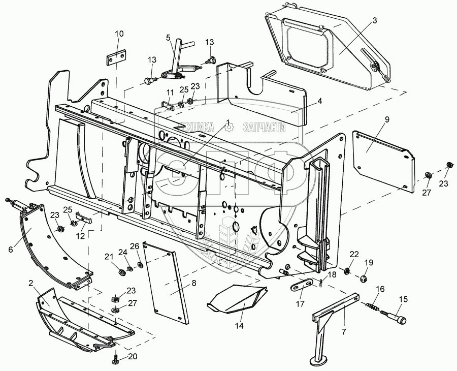 Каталог запасных частей к технике: Гомсельмаш КПК Полесье-3000. Рама измельчителя