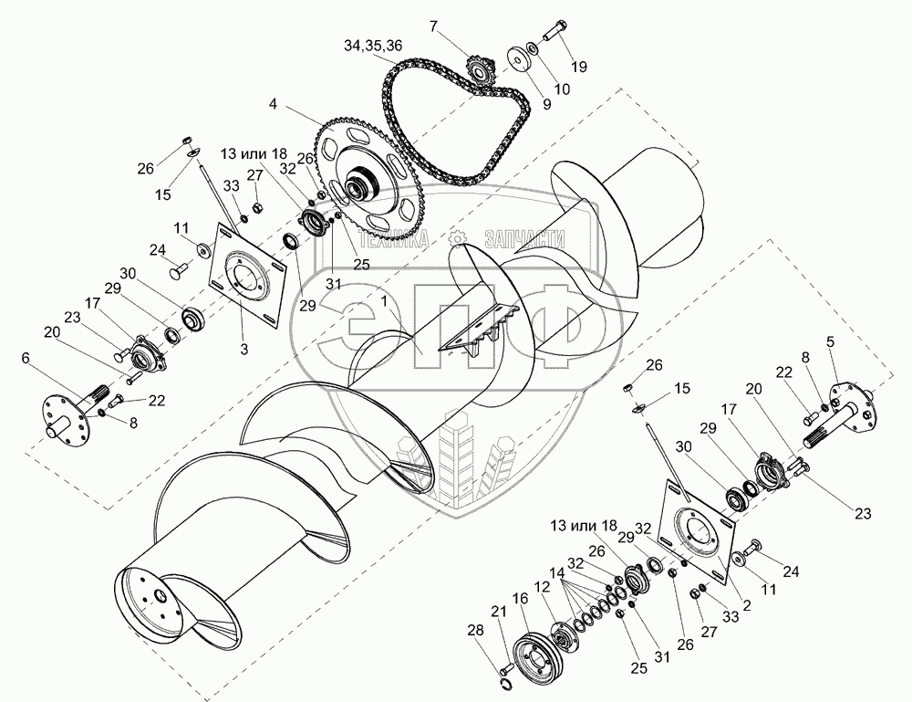 Каталог запасных частей к технике: Гомсельмаш КПК Полесье-3000. Установка шнека