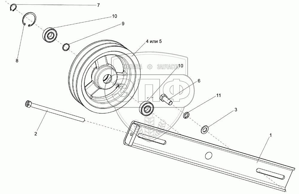 Каталог запасных частей к технике: Гомсельмаш КПК Полесье-3000. Устройство натяжное
