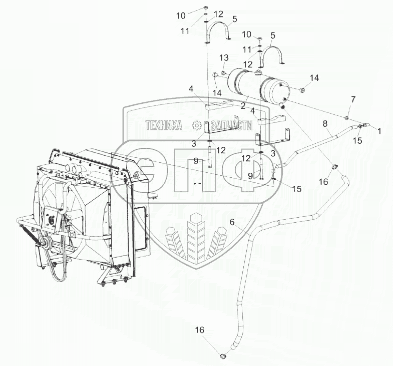 Каталог запасных частей к технике: Гомсельмаш KС-200. Установка бачка расширительного КС-200-0116070Э1