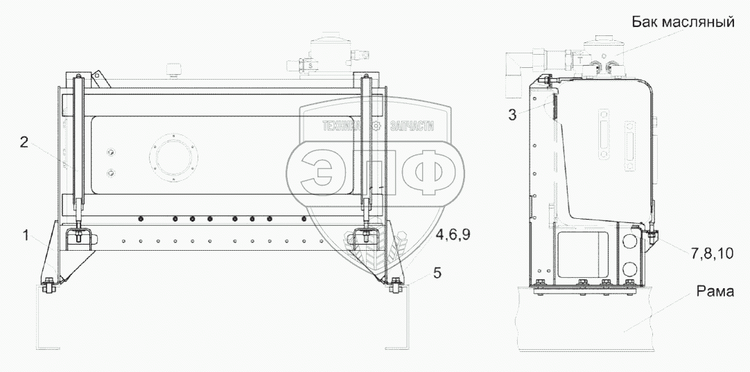 Каталог запасных частей к технике: Гомсельмаш KС-200. Установка бака масляного КС-200-0000040Э1