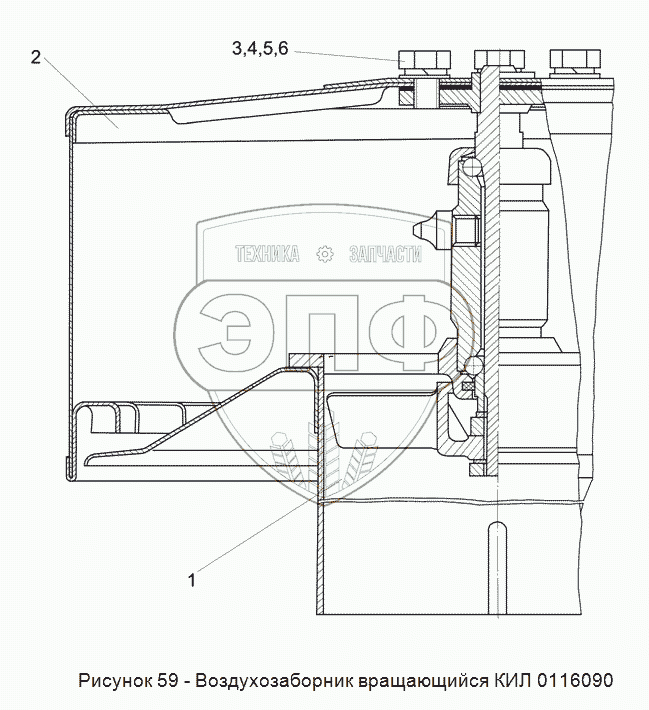 Каталог запасных частей к технике: Гомсельмаш КСК-100А-3. КИЛ 0116090 Воздухозаборник вращающийся