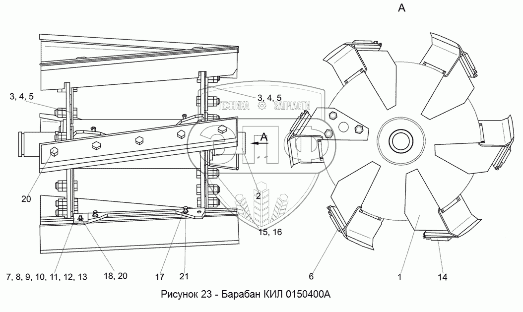 Каталог запасных частей к технике: Гомсельмаш КСК-100А-3. КИЛ 0150400А Барабан